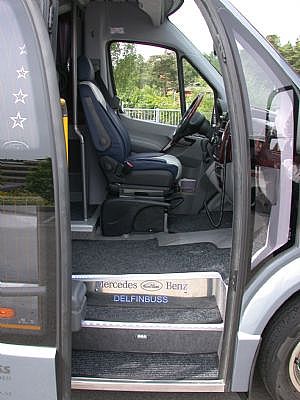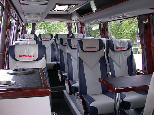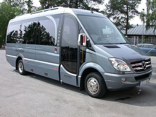 Vår nya exklusiva minibuss/VIP-buss! Den är utrustad med fällbara och i sidled flyttbara skinnsäten, som alla är utrustade med säkerhetsbälten. Air Condition, kylskåp, kaffemaskin samt andra bekvämligheter finns att tillgå på denna buss.